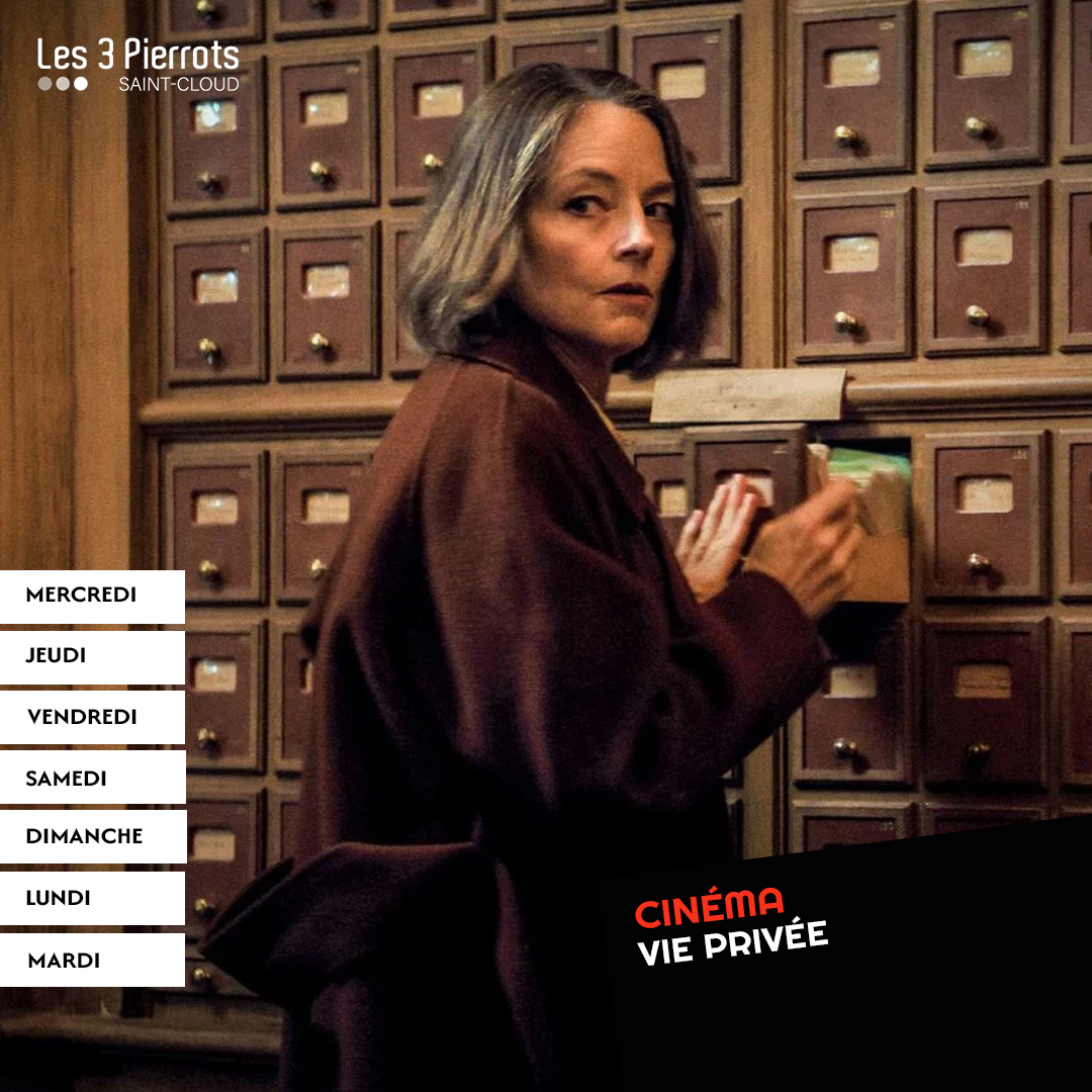 26 nov 27 nov Du Mercredi 26 novembre 2025 au Jeudi 27 novembre 2025 Cinéma Les 3 Pierrots VIE PRIVÉEFrance – 1h45 - Drame, Policier, ThrillerRéalisé par Rebecca ZlotowskiLilian Steiner, psychiatre reconnue, apprend la mort de l’une de ses patientes et sepersuade qu’il s’agit d’un meurtre.Mer : 20h30 | Jeu : 21h | Ven : 16h15, 21hSam : 14h15, 20h30 | Dim : 11h15, 14h, 18h30Lun : 16h15 | Mar : 14h, 16h15DOSSIER 137Mer : 16h | Jeu : 14h | Ven : 16h, 18h15, 20h45Sam : 18h15, 20h45 | Dim : 16h15, 20h45 | Lun : 14hMar : 20h30 UN POÈTE voPrix du jury – Festival de Cannes 2025Colombie, Suède Allemagne - 2hComédie dramatiqueRéalisé par Simón Mesa SotoUn poète en manque de reconnaissance, mène une existence solitaire.Ven : 18h30 | Sam : 14h | Dim : 20h30 | Lun : 20h30 HOPPER ET LE SECRET DE LA MARMOTTE À partir de 6 ansBelgique, France - 1h29 - AnimationRéalisé par Benjamin MousquetUne mystérieuse marmotte aurait le pouvoir de remonter le temps.Mer : 14h | Sam : 16h15 | Dim : 11h30, 13h45 GISELLE voFrance - 1h46 - BalletRéalisé par François RoussillonGiselle aime Albrecht qui, sous ses habits de villageois, s’avère être un duc.Opéra live Sam : 18h NOUS L’ORCHESTREAVANT-PREMIÈRE, EN PRÉSENCE DU RÉALISATEURFrance - 1h30 - DocumentaireRéalisé par Philippe BéziatPour la première fois, caméras et micros se faufilent entre les 80 musiciens de l’Orchestre de Paris.Regards documentaires Dim : 16h Tous les spectacles